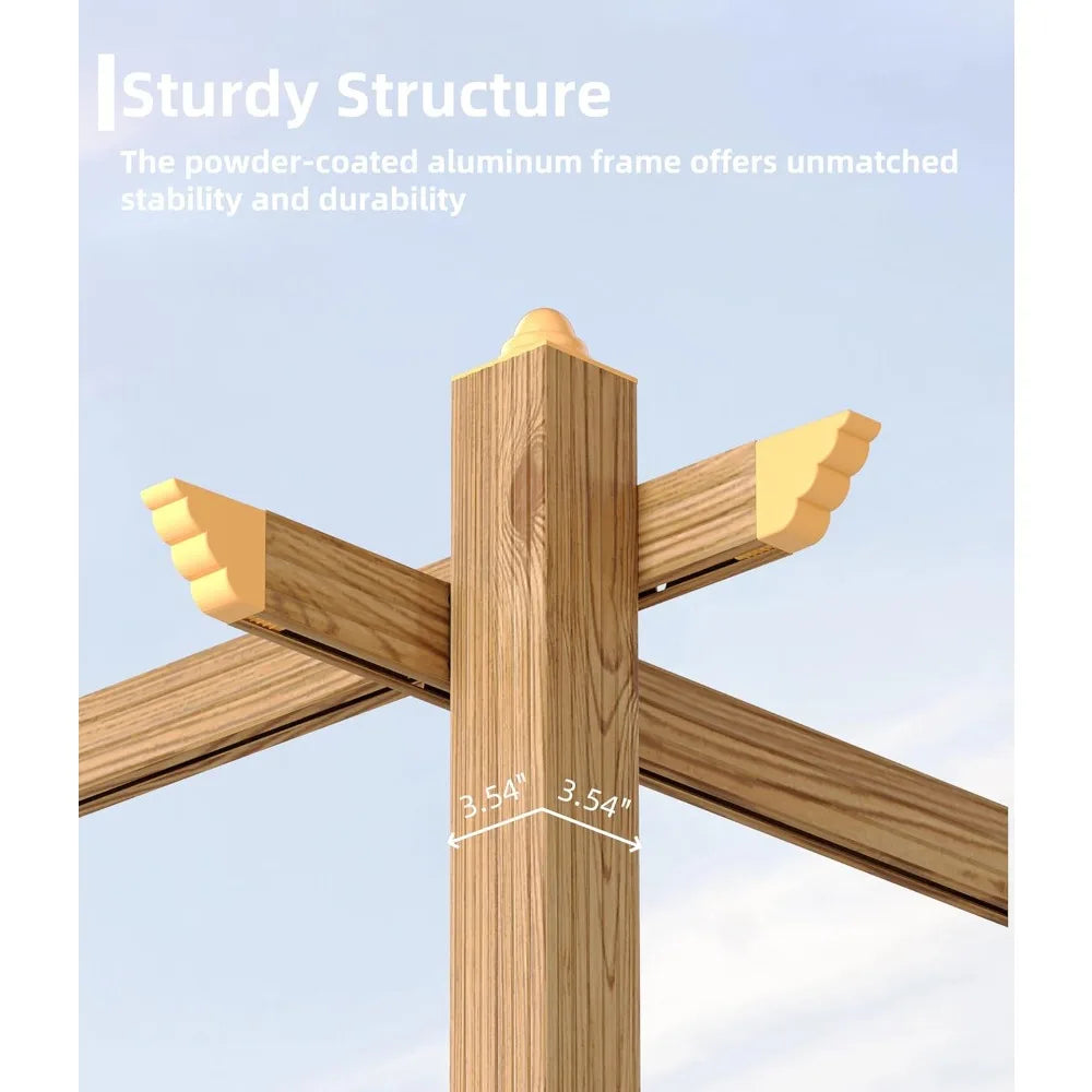 - Faux Wood Elegance with Versatile Functionality: Featuring a sophisticated wood-grain finish, this pergola blends seamlessly into gardens, patios, and backyards. Its spacious 10' x 10' footprint easily accommodates lounge seating, dining sets, or grills—transforming your outdoor area into a stylish and inviting living space.