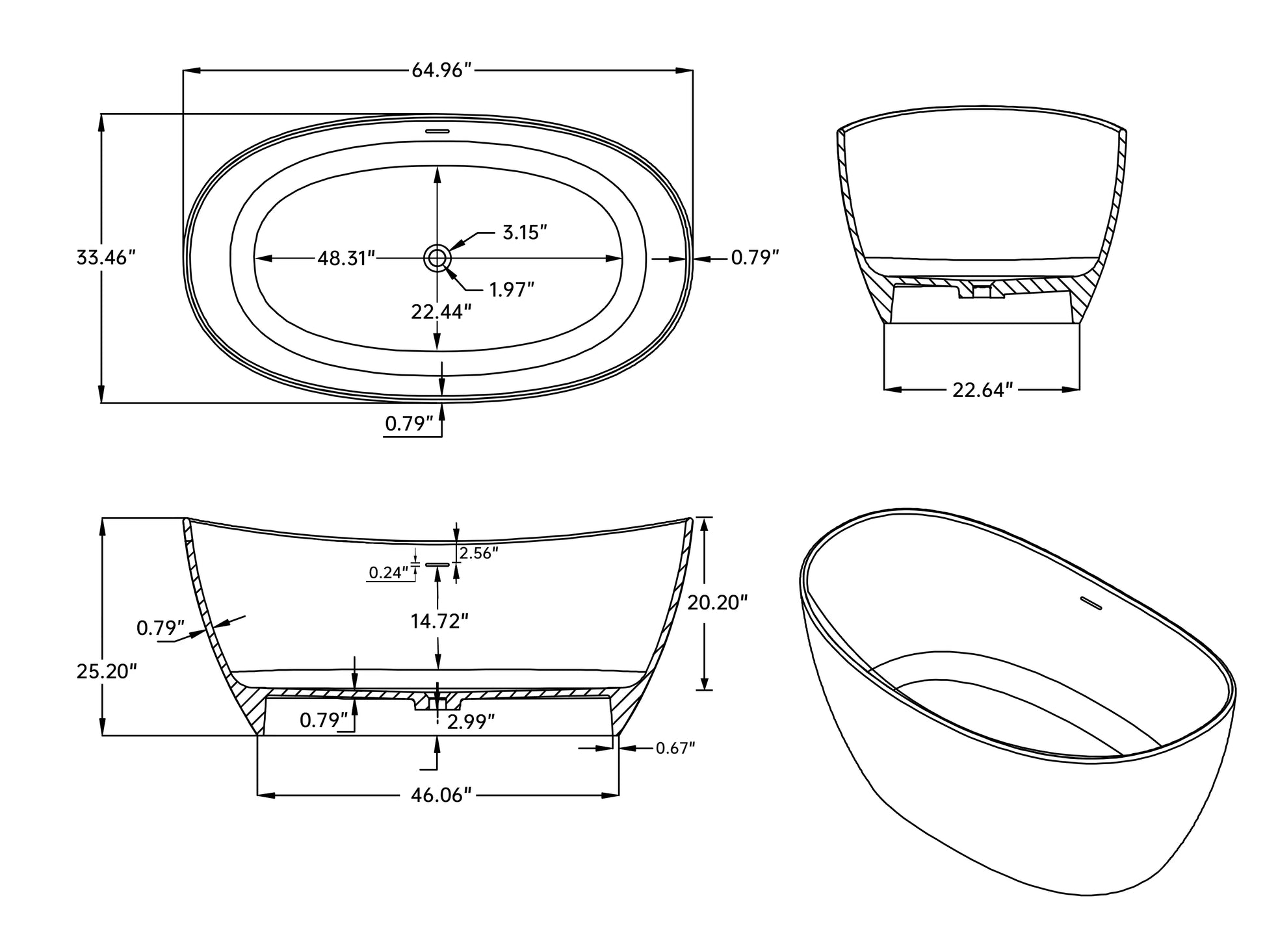 - Deep, Luxurious Soaking Experience: Designed for indulgent relaxation, the spacious 65” interior allows you to fully unwind in comfort—bringing elevated style and restorative comfort to your bathroom retreat.
