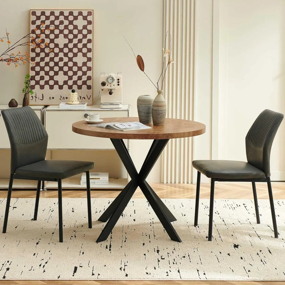 - Space-Saving Modern Design: A 37” round table paired with two streamlined chairs creates an inviting dining setup that fits effortlessly into smaller spaces.