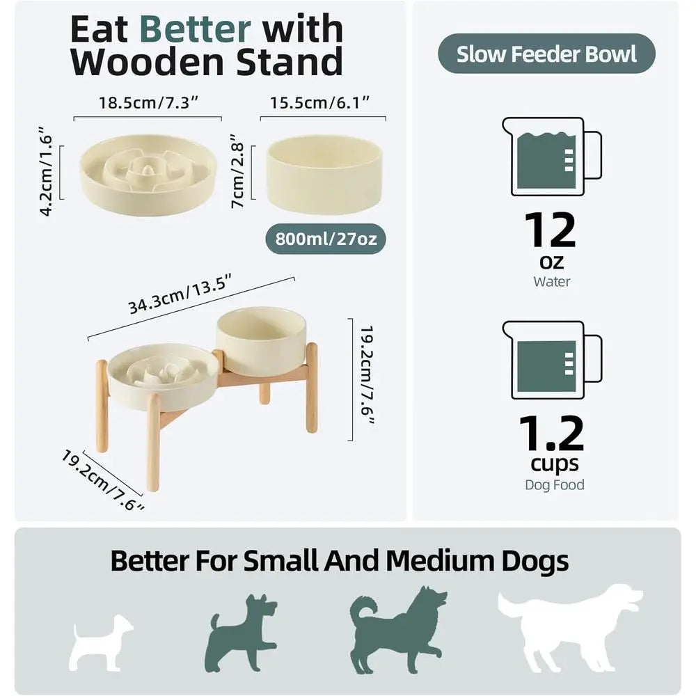 Elevated Slow Feeder Bowl Set with Wooden Stand