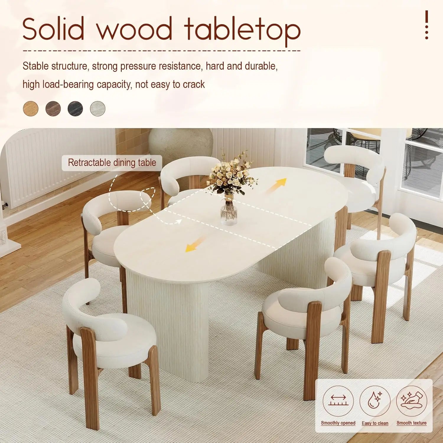 - Seamless Expandable Function: Extends from 59” to 90.55”, comfortably seating 4–8 guests with a smooth gliding mechanism for effortless transitions.