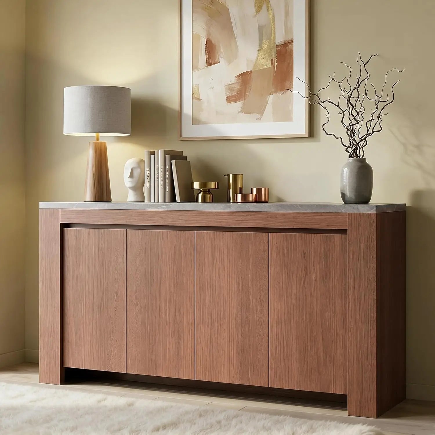 Modern Sideboard with Faux Marble Top and Hidden Storage