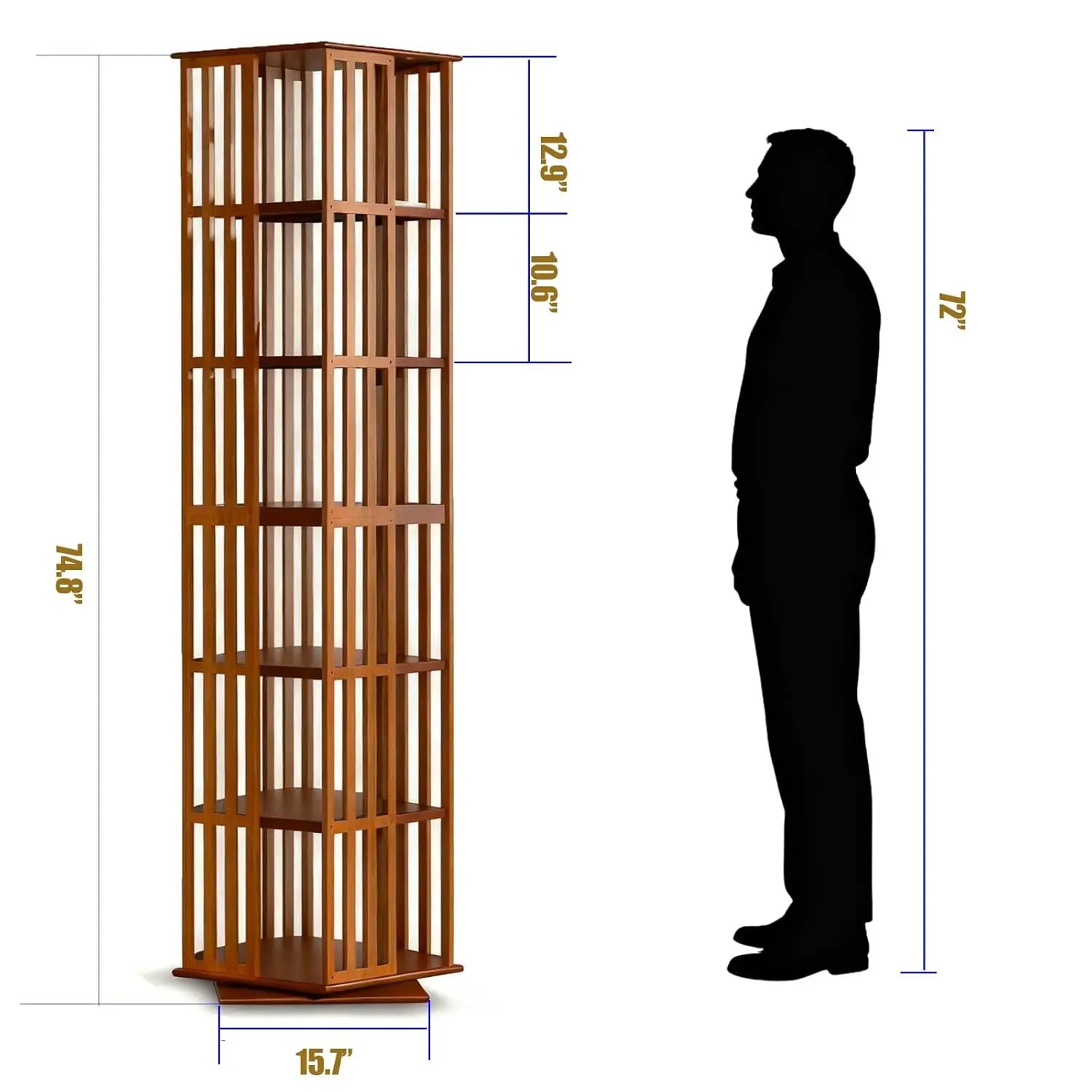 Rotating Bamboo Bookshelf with Space-Saving Tower Design