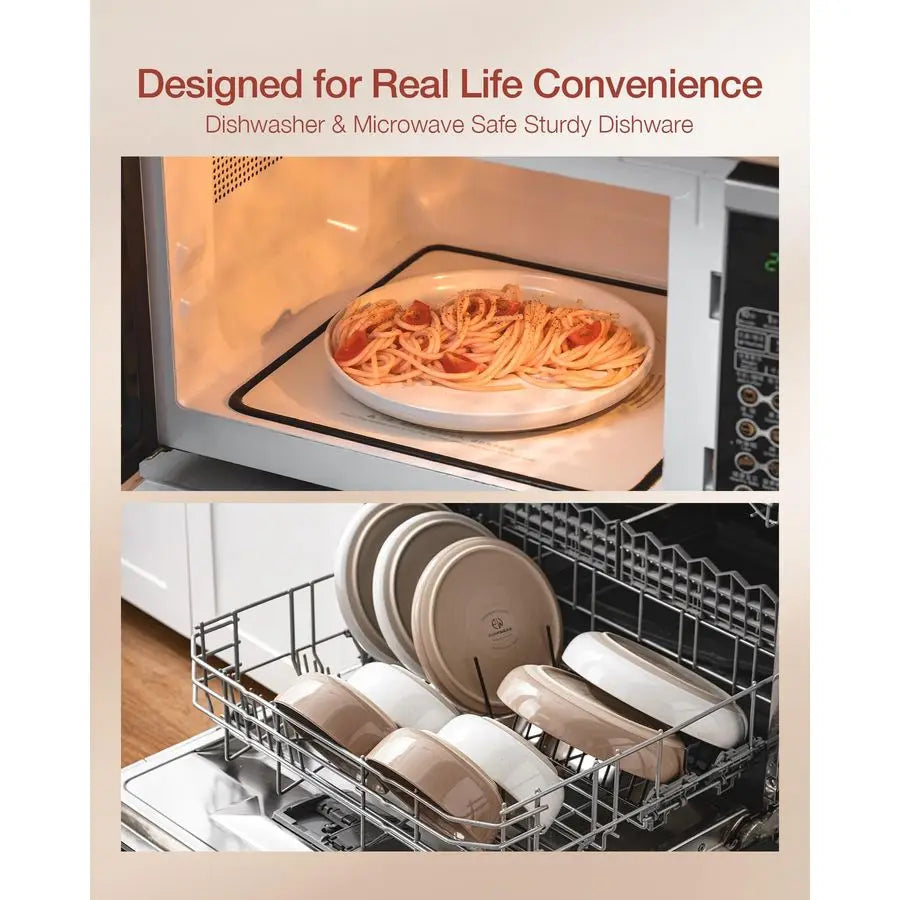 - Practical and perfectly sized: Includes dinner plates, salad plates, and cereal bowls for four—stackable, dishwasher safe, and microwave safe for seamless everyday dining.