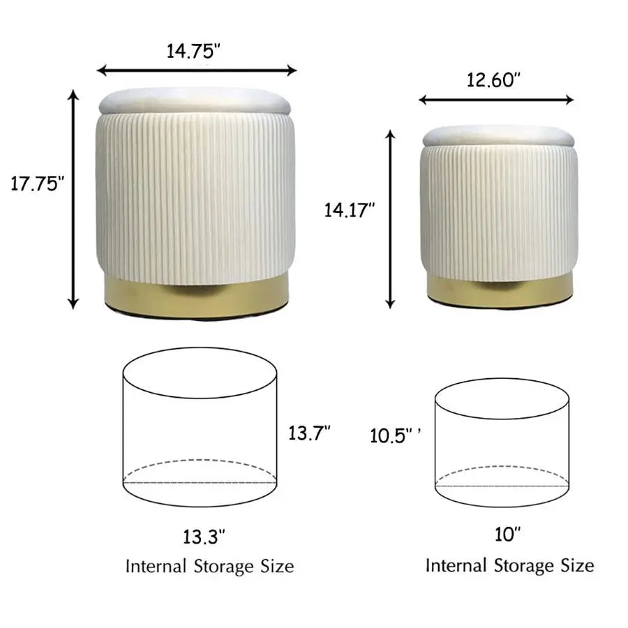 - Dual Size Space-Saving Set: Includes two ottomans (14.75” x 14.75” x 17.75” and 12.6” x 12.6” x 14.17”) that nest together for easy storage.
